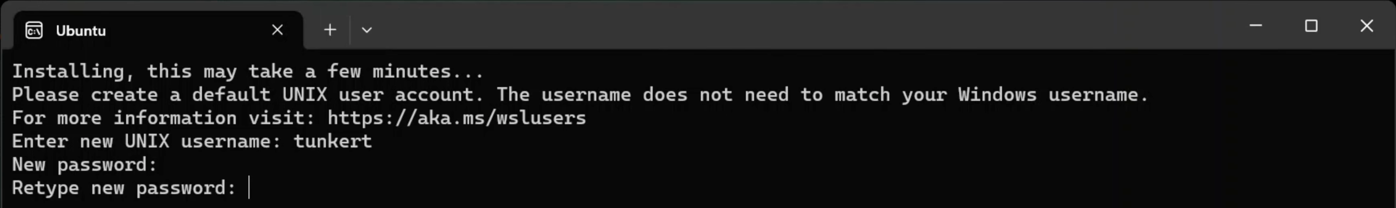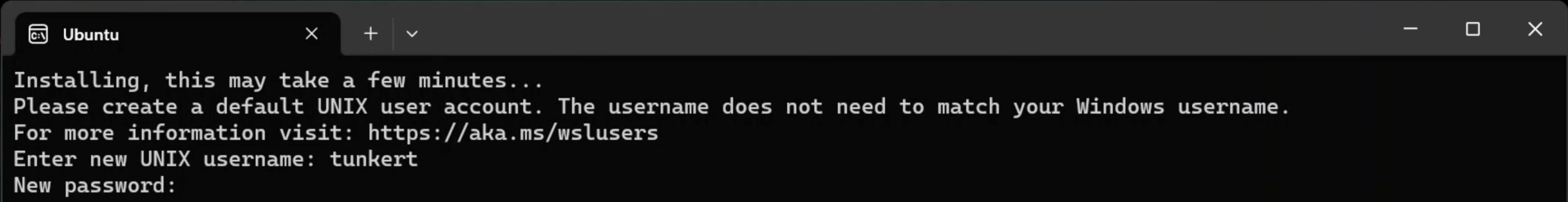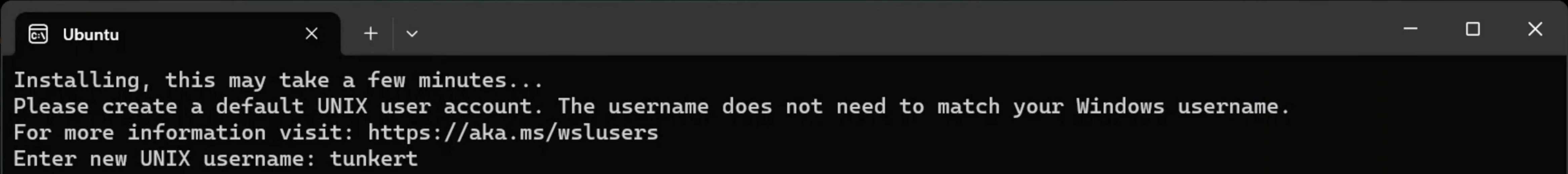 Enter your chosen username and hit Enter. If you make a mistake in typing your username, you can close the window and open it again. In this example, tunkert is the username.